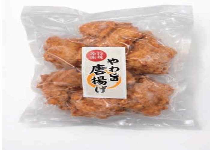 やわ旨唐揚げ:鶏肉(タイ産)、液体調味料(しょうゆ、米発酵調味料、おろし生姜、砂糖、蛋白加水分解物、おろしにんにく、醸造酢、味噌、植物油、チキンエキス、コショウ末、香辛料)、衣(粉末調味料(小麦粉、コーンスターチ、砂糖、食塩、小麦澱粉、コショウ末、植物性たん白、ぶどう糖、香辛料)、片栗粉)、揚げ油(食用大豆油、食用なたね油)/加工デンプン、調味料(アミノ酸等)、膨張剤、増粘剤(キサンタン)、(一部に小麦・ごま・鶏肉・豚肉・大豆含む)